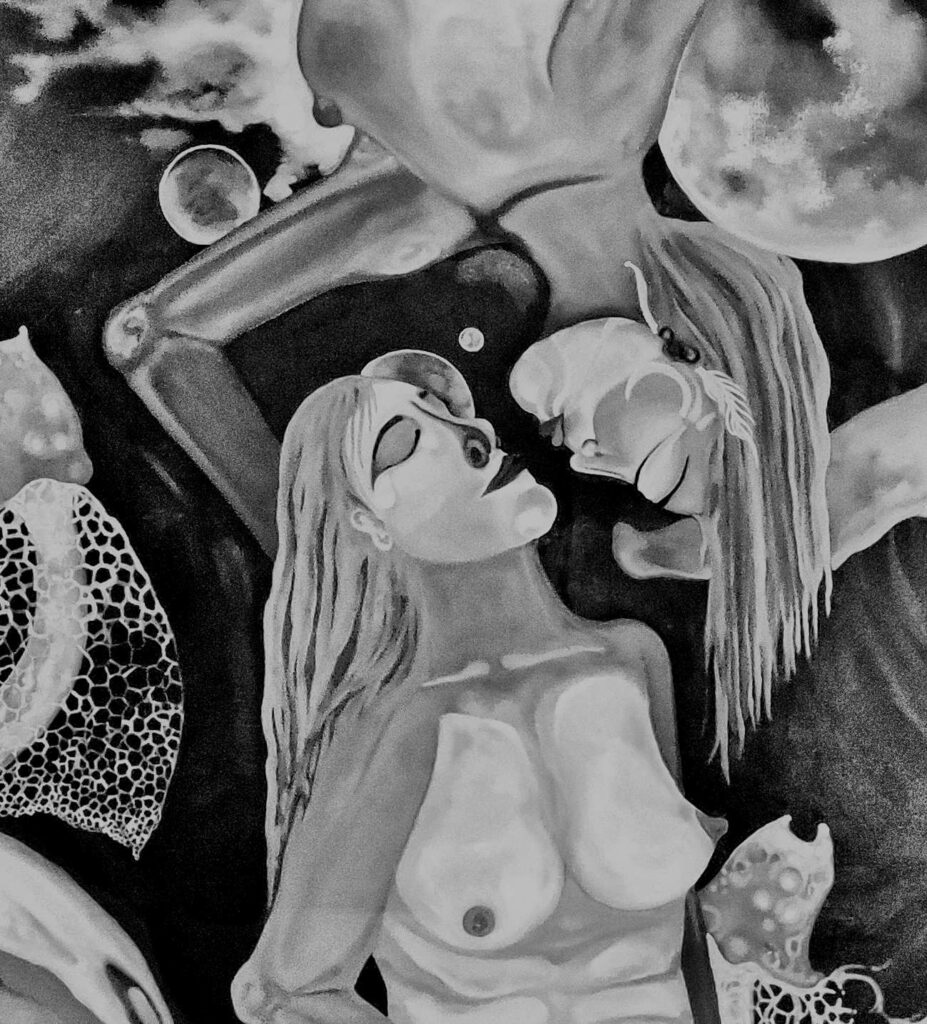 "I am drawn to the human form, particularly that of Woman. Her experiences and feelings. I let my unconscious guide my compositions. I am particularly interested in the ambiguous nature of identity and the body as an all too inadequate vessel for the self." - V
